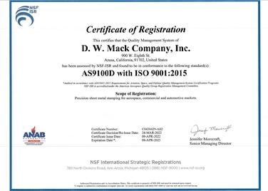 To achieve the above objective and satisfy our customer expectations, our Company is committed to maintaining our Quality Management System based on SAE AS-9100D.